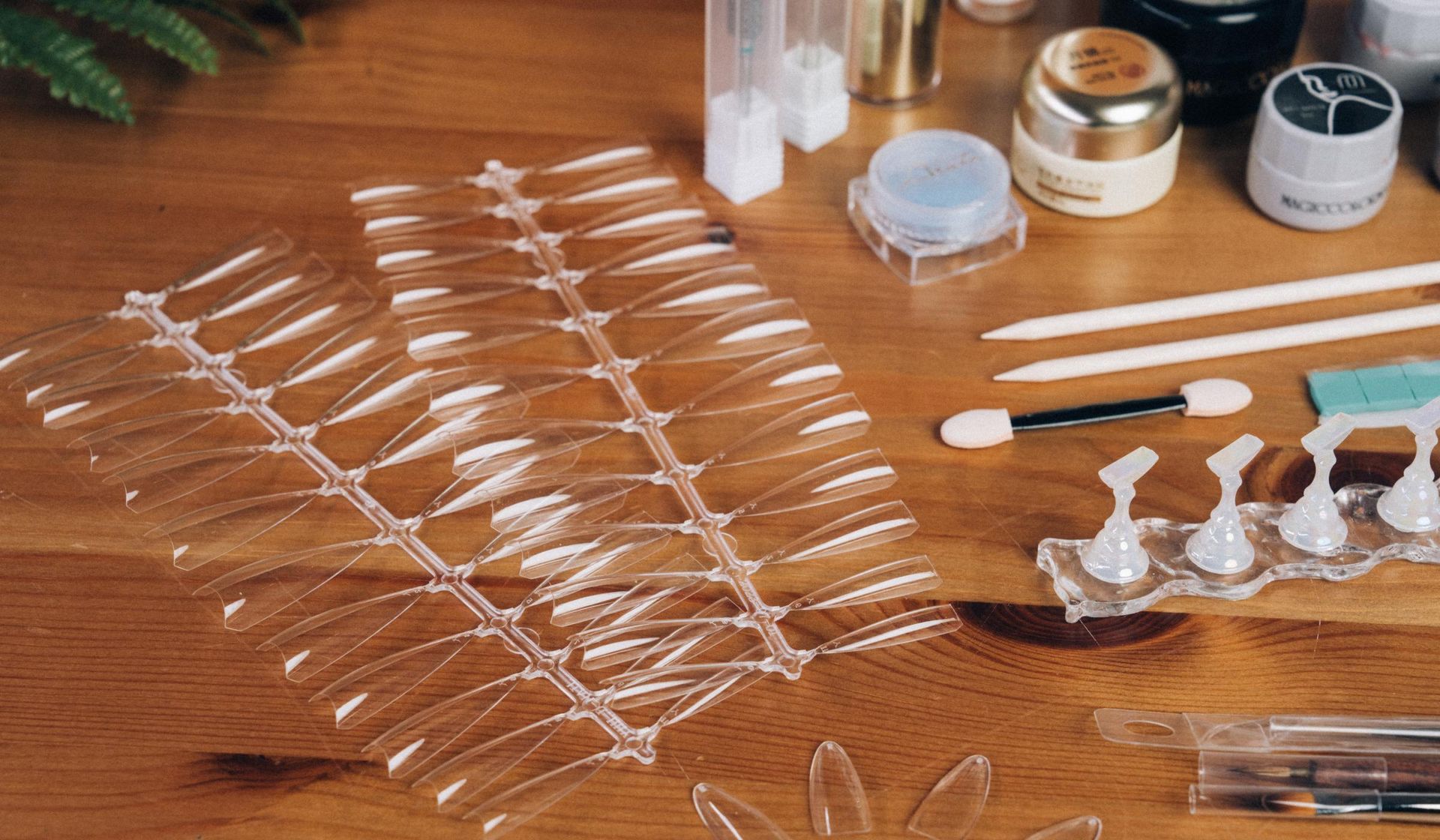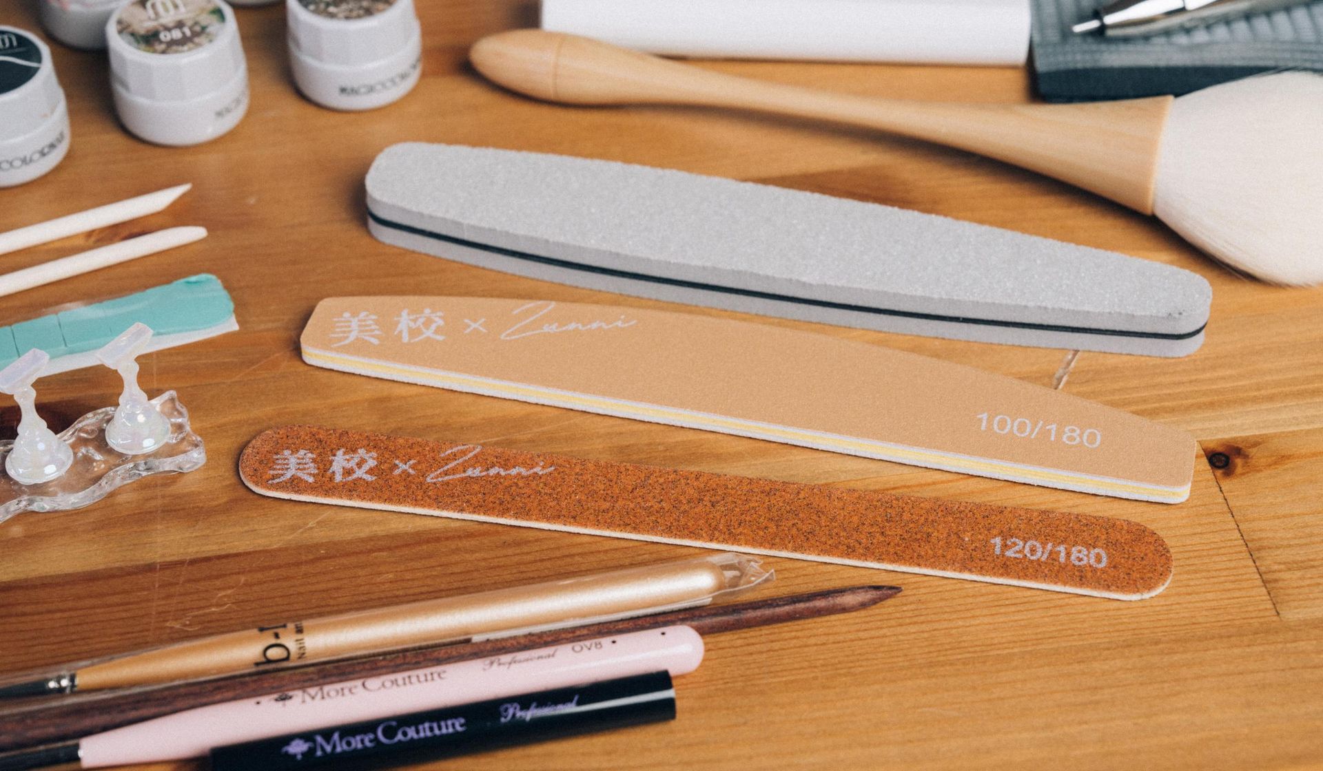 前置保養工具|鋼推、⽢⽪剪、真甲磨板、厚磨板、海綿拋、指緣油、櫸木棒 5 支、牙科紙數張
