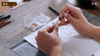 先在表面上薄薄上一層建構後,不需要照燈,取一點金箔點放在甲面上,接著照燈 30 秒,就完成囉!