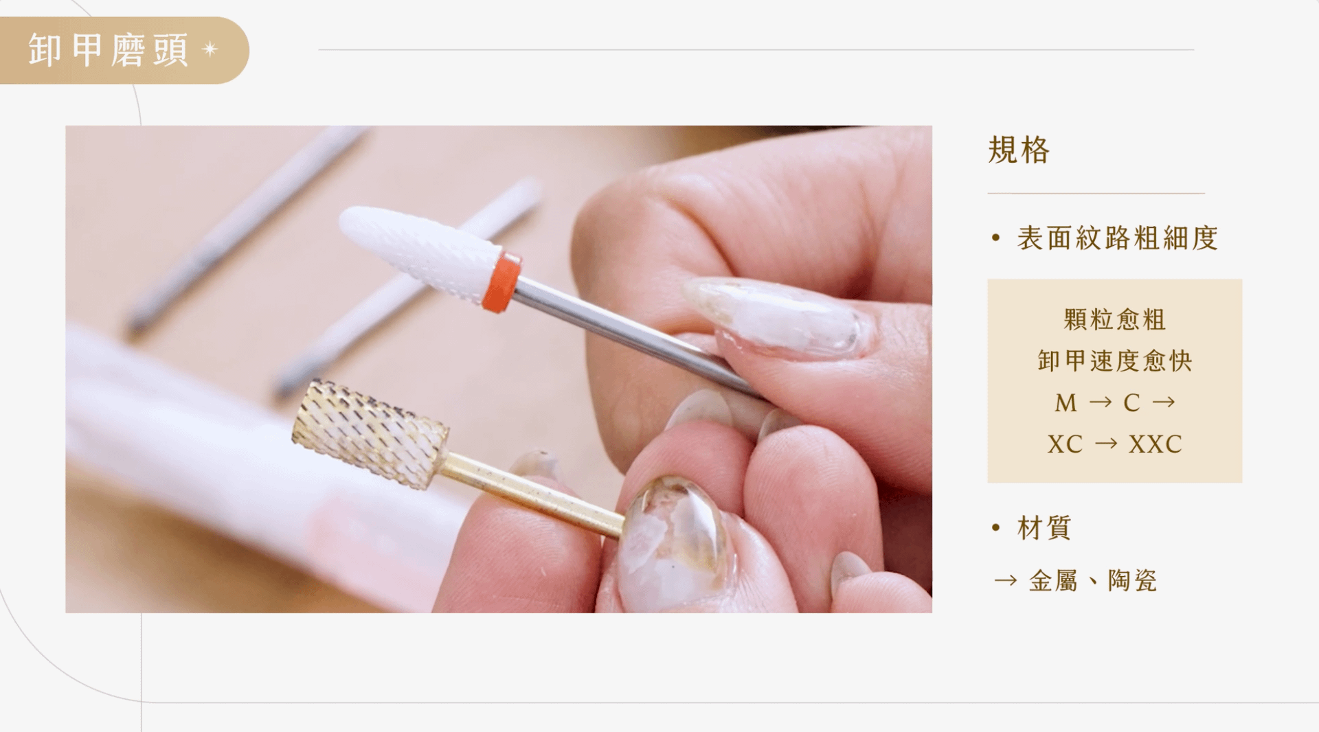 如果用的是磨甲機,段數一開始也不要開太高,建議開你手邊這台磨甲機前 1/3 的段數就好,花多一點時間慢慢磨,比較能夠掌握力道和範圍。